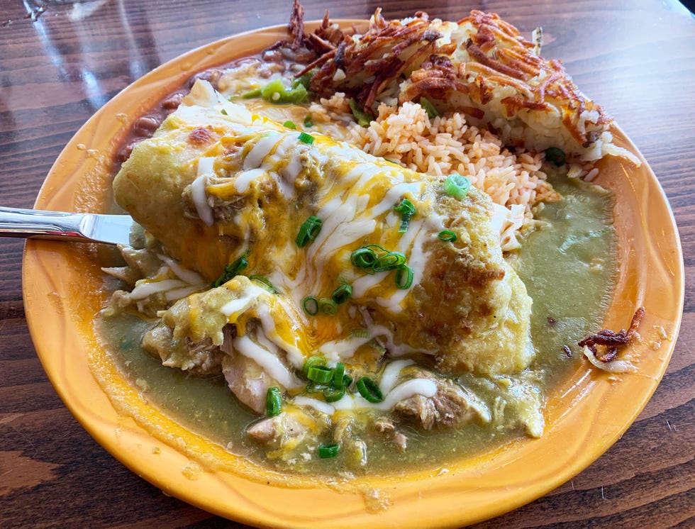 Roll burrito tightly folding the ends in and place seam-side down on prepared baking sheet. Mexican Restaurants Latin American Restaurants Spanish Restaurants 1 View Menu 732 985-3606. Beef shredded beef or pork smothered with green chili or.